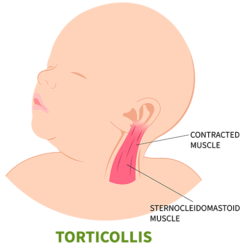 Muscular torticollis occurs when a child’s neck muscles are too tight, leading to a restriction in their neck’s range of motion that causes them to hold their head to one side.